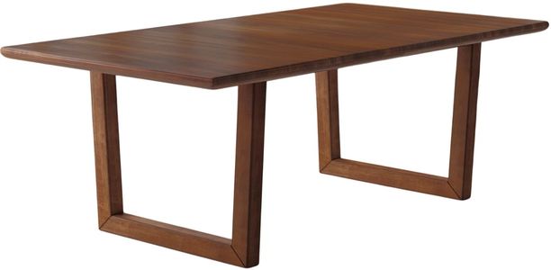 Voss dining brings contemporary style home, where the focus of this collection is the natural beauty of the solid walnut wood. The table top has an inverted beveled edge which is slightly rounded, complimenting the open trestle design and shape. All pieces feature soft rounded edges, with beveled framing on the server. Hardware is minimal with a low profile to keep the focus on the wood.