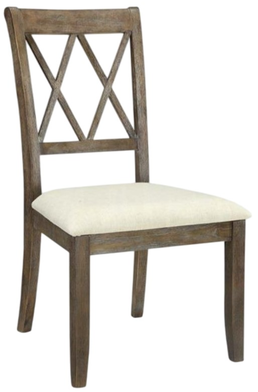 The Claudia side chairs are the perfect finishing touch to a dining room. The double "X" backrest design gives these chairs the perfect stylistic touch. With padded seats that are upholstered in neutral beige linen; to go with any color scheme. The salvage brown frame adds a subtle hint of rustic flair.Read More