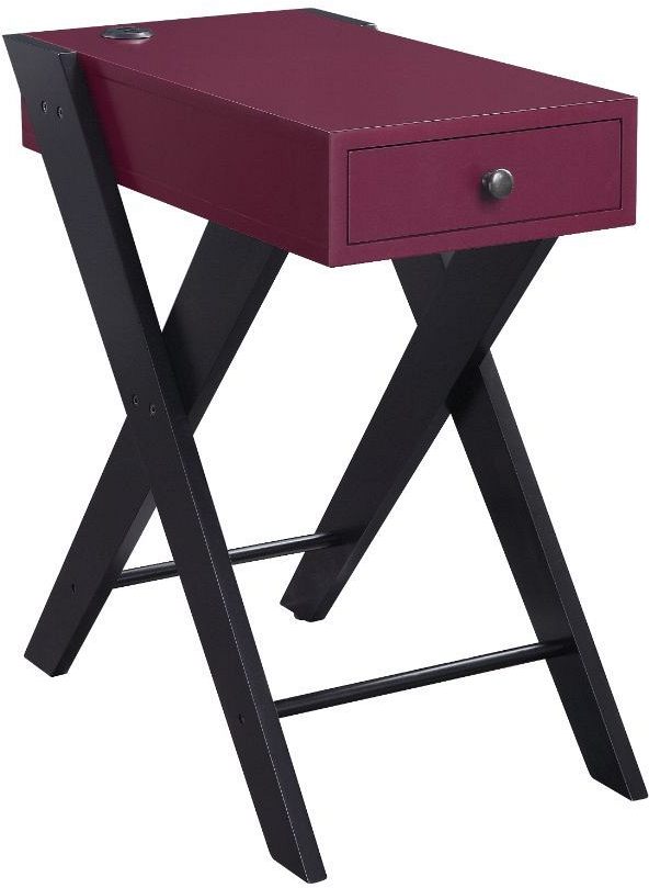 Lending a glint of glamour to your space with this Fierce side table. Available in burgundy and white finish, this piece features a wooden top with a USB power dock and X-shape side legs. At the same time, a pullout drawer offers plenty of storage for small accessories.Read More