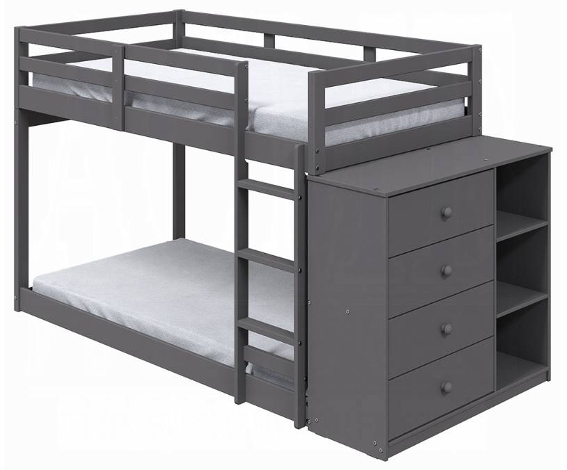 Whether you need extra sleeping space, or your child simply loves sleepovers, this Twin over Twin Bunk Bed is perfect for your home. This Gaston bunk bed with cabinet is designed with a clean silhouette and a modern gray finish.Read More