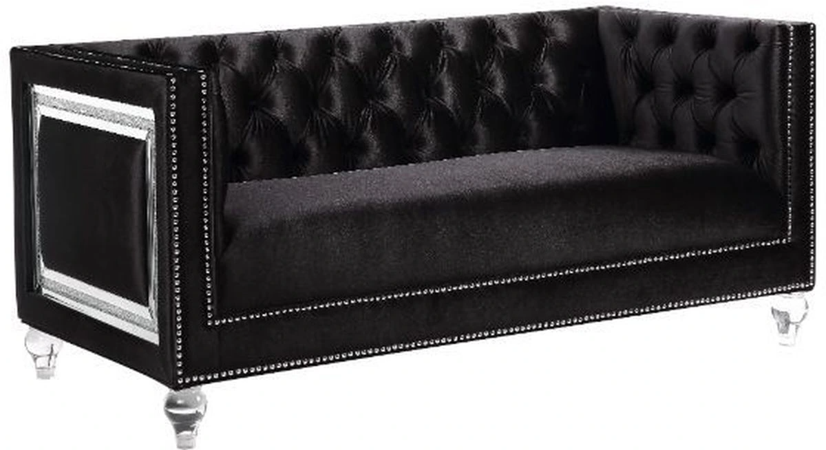 Looking to create a glamorous living room, look no further. The Heibero collection is ideal for that. Featuring timeless button tufting and the more modernized fine details such as the mirrored trim accents. The burgundy velvet upholstery is an eye-catcher.Read More