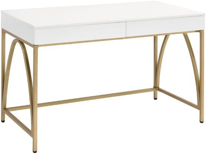 The Lightmane Writing Desk is a stylish piece designed for modern and contemporary spaces. It features a high-gloss white wooden top and two storage drawers, supported by a metal base with a luxurious gold finish.Read More
