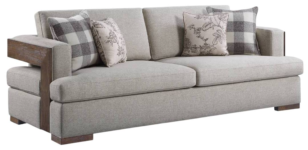Looking at the fine lines and beautiful curves, this relaxing Niamey living room set features smooth fabric, exposed wood trim, track style arms and contrasting pillows. This upholstered pieces will become the focal point of any living room. Subtle upholstery in the softest of hues is the essence of a simpler time and place.Read More