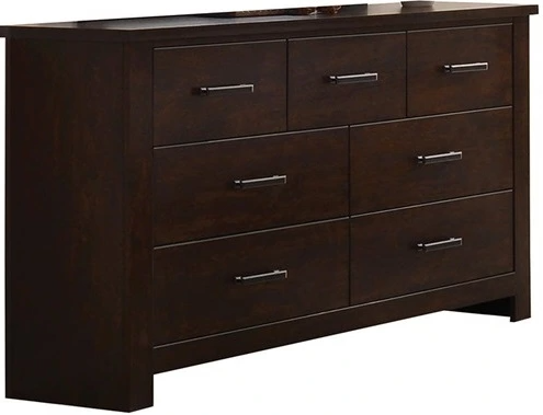 The ACME Furniture Panang Brown Dresser features a rich brown finish with clean, modern lines. Offering ample storage space with its six spacious drawers, it combines functionality with style. Its sturdy construction and sleek design make it a perfect addition to any bedroom, providing both elegance and practicality.Read More