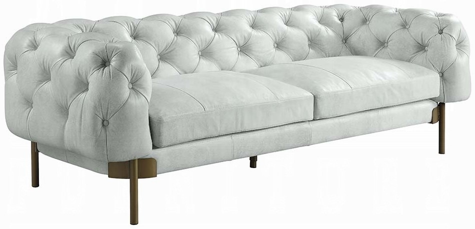 This Ragle chesterfield sofa brings both modern and impressive style to your living space with luxurious Vintage White top grain leather upholstery. Diamond-tufted backrest to smooth and extremely comfortable high-density full foam cushions for a seating experience that lives up to this sofa's polished look.Read More