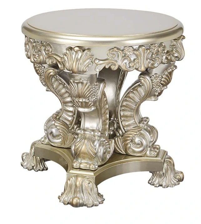 Traditional style that never goes out of fashion, the Sorina end table is a great addition to your living room. The silver and gold finishes complement each other flawlessly. This table showcases elaborate carvings on the table base to recreate the regality of the bygone era in your living space.Read More