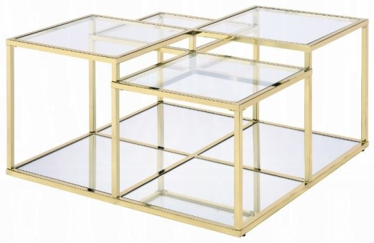 Modern simplicity makes your space feel uncluttered and stylish. The Uchenna Coffee Table has a brilliant color and lustrous finish to enhance it's sleek modern silhouette. Metal table frame in a gold finish exudes lustrous shine, topped with tempered glass to bring a glamorous-yet-modern flair to this piece.Read More