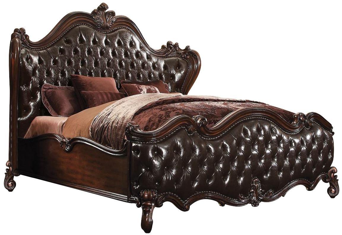 Sleep like royalty with this Versailles Bed Set. The bedroom set was inspired by old European design. The Bed features a carved scrollwork accent with nailhead trim Decor and tufted upholstery on both the headboard and footboard.Read More