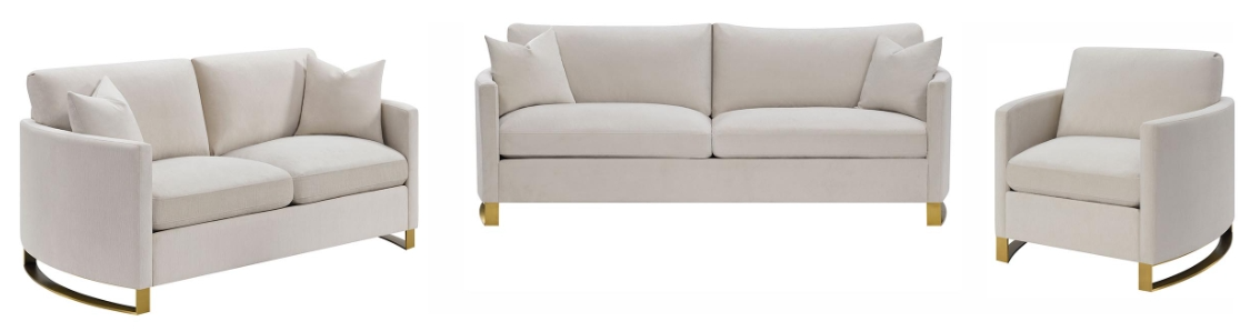 Stainless steel legs feature rose brass accents that make the elegant beige finish even more gorgeous.