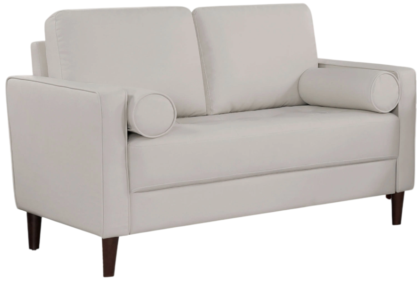 This leatherette loveseat will bring you back to the long gone era of cigars and wine. Here we find elements such as loose pillow backs, a pair of bolter pillows, and a tufted one-piece seat cushion. The arms are trimmed with welt that innocuously matches the color of the body.Read More