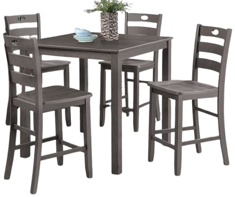 The Furniture of America® Lubbock 5-Piece Gray Counter Height Dining Table Set includes a counter-height table and four matching chairs, all finished in a sophisticated gray tone. Crafted for durability, this set offers a comfortable and stylish dining experience, perfect for smaller spaces or casual dining areas.Read More