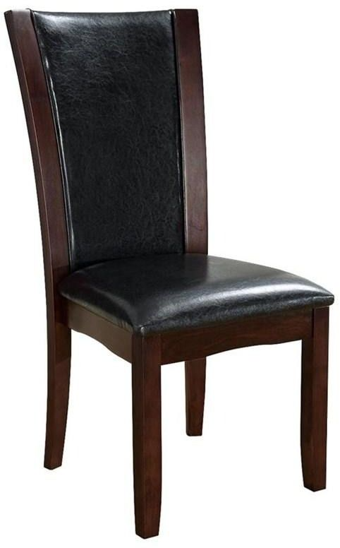 The Manhattan side chair set combines transitional elegance with a dark cherry finish and black leatherette upholstery. Padded seats and backs ensure comfort, while solid wood and veneer construction provide durability. This two-piece set enhances dining spaces with timeless sophistication and versatile design.Read More