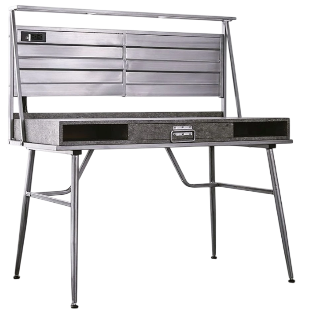 Do away with the concept of a desk and give yourself a rugged work space. This wrought metal desk adds an industrial element to a room. The light corrugation on the back panel, and bucket style drawer pull give a nice touch of detail.Read More