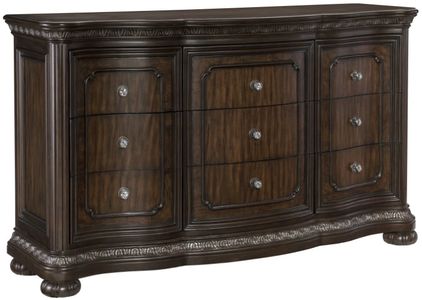 The traditional profile of the Beddington Collection pairs classic accent with elegant highlight to create a timeless look for your bedroom. Stylized decorative molding defines the bow-fronted shape of the traditional dresser, as do the bun feet and picture frame molding that fronts the drawers.Read More