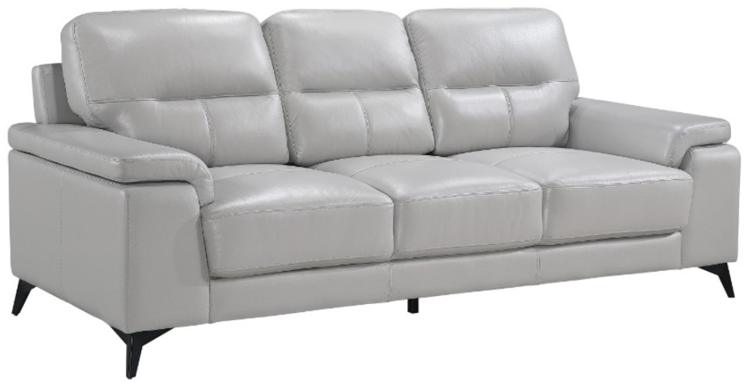Styled for the modern home, the Mischa collection’s sofa blends the luxurious feel of leather with the comfort of plush seating. The silver top grain leather cover, with faux leather, enhances the sleek profile of the collection. Contoured pillow-top arms and black metal legs further enhance the modern stance.Read More
