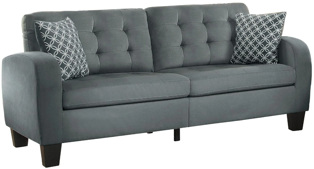 A hint of retro styling provides a clean and classic look for your contemporary home in the Sinclair Collection. The sofa allows for the perfect placement within your living room. Gray fabric with contrast pillows that furthers the look and versatility for placement within a number of home decors.Read More
