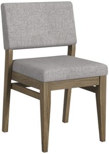 The Flex upholstered side chair combines comfort with charm. Soft gray fabric cushions a supportive seat and back, while the sandbar oak frame crafted from oak veneer and select hardwoods ensures lasting strength. Clean lines and warm tones create versatile seating perfect for relaxed dining and everyday gatherings.Read More