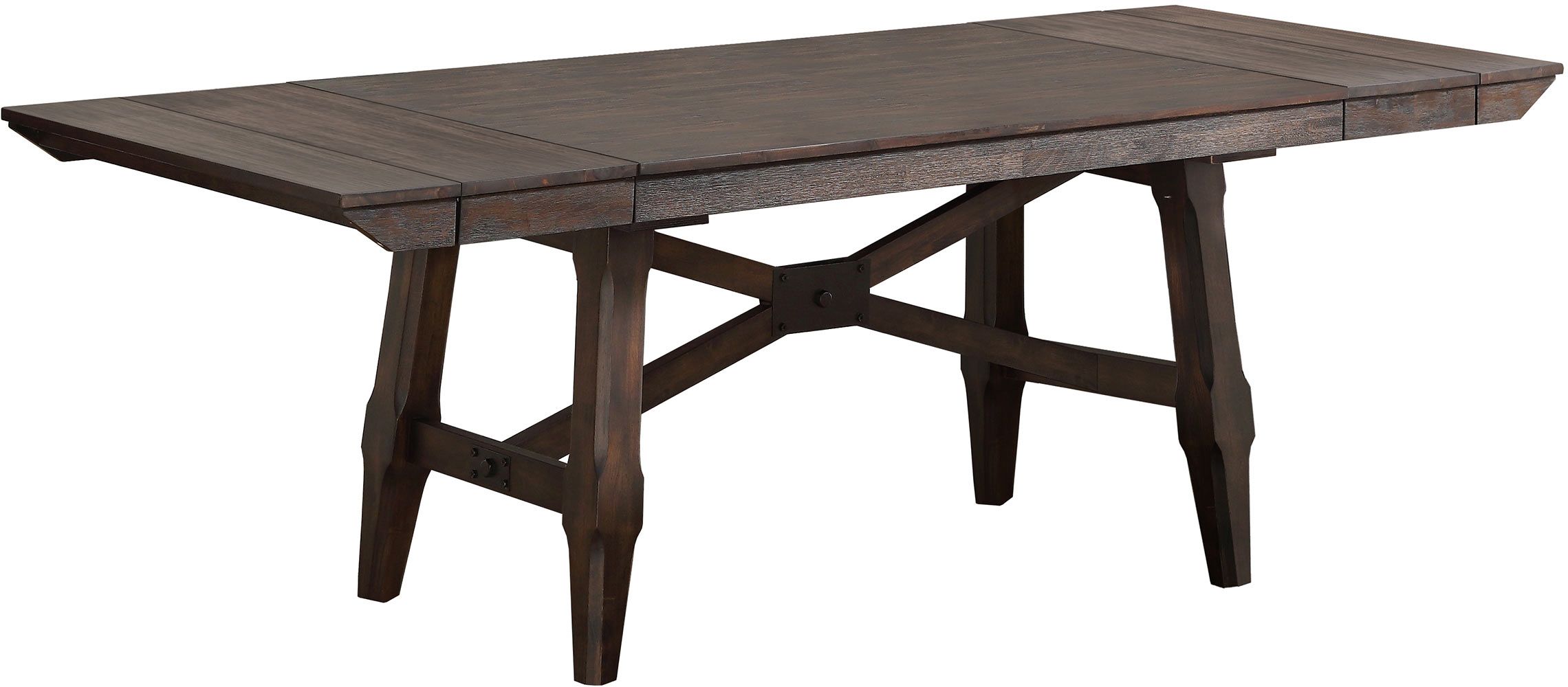 Solid wire-brushed acacia and solid hardwood hint at industrial style with metal hardware detail and subtly carved legs. Menswear upholstered chairs lend softness to the sturdy table and bench.Read More